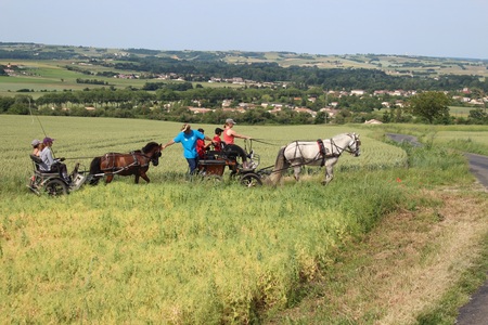 3 attelages et 1 cavalière ont admirés les paysages vallonés et ont fait escale aux théâtre des Bouchauds.