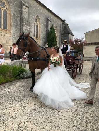 Une superbe mariée dans la carriole d'Ulka à Champniers le 4 mai 2019.