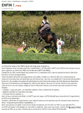 Le weekend du 11 et 12 septembre 2021, c'était lle TREC de Dirac , Attel'balade y a contribué : Félicitations à Camille pour cette première !
